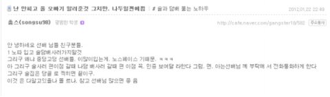 안 녕하세요 선배 님들 친구분들.