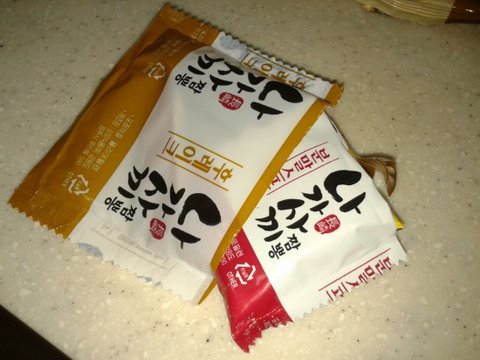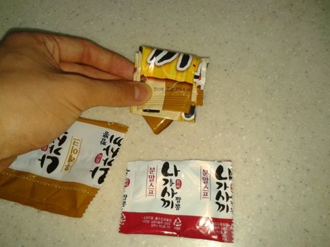그다음에 분말스프 껍질에 쏙 집어 넣으면 끝!.. 은 아니고 아직 남았어요~