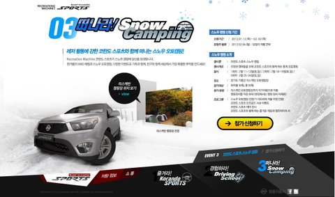 스노우캠핑 행사내용을 살펴봤더니 코란도스포츠시승행사도 있어서