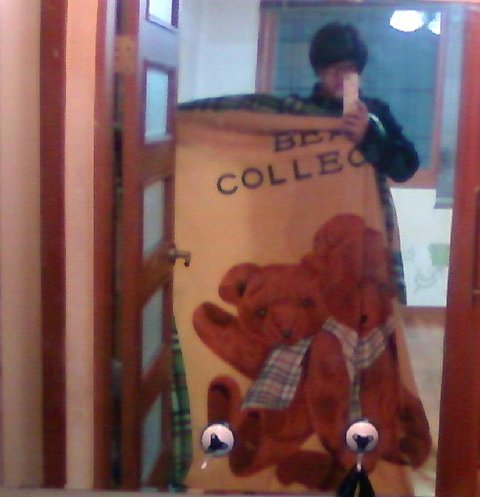 그 담요는 좀 큰 담요인데......가운데에 곰인형이 그려져있는 노란.... 테두리는 초록색 체크무늬인 담요임ㅋㅋ
