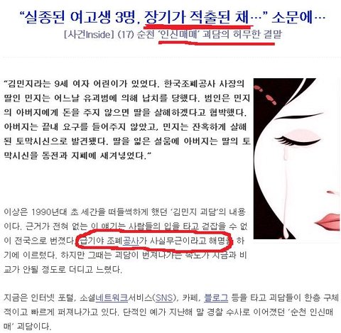 제가 이글을 쓴 이유는요..... 저도 장기매매,인신매매 글보면 무서워요 ㅠㅠ