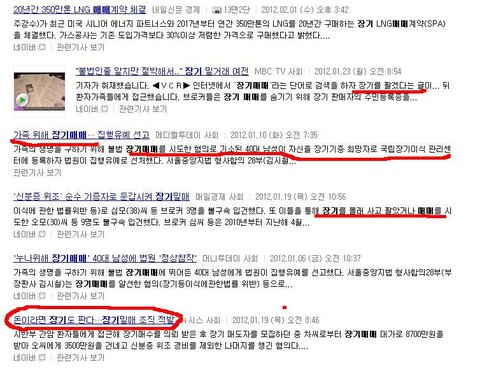 다만 자기가 자신의 장기를 돈받고 판다는 내용이 대부분입니다 ...ㅋㅋㅋㅋ