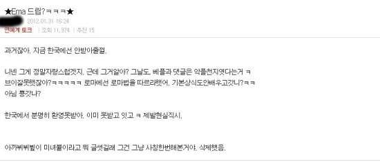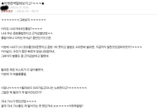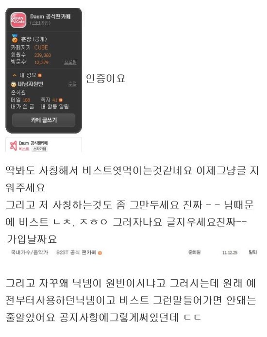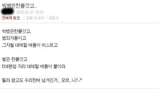 비스트가유명해지면 너희들도 이렇게욕먹게하진않았어야지