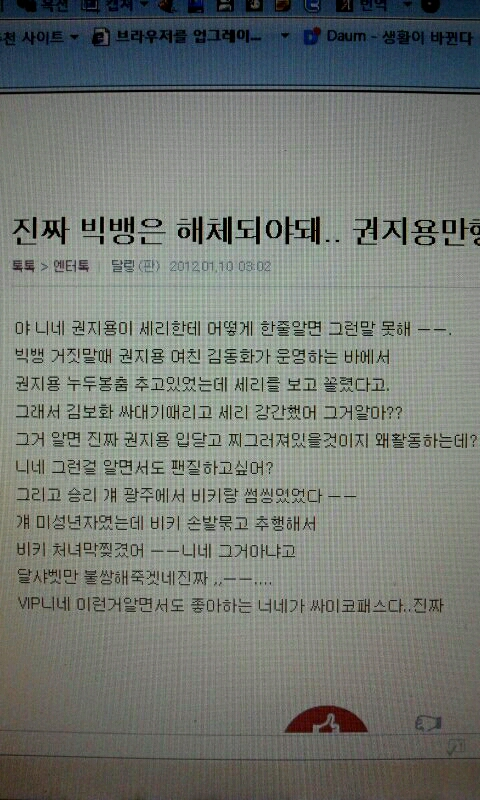 빅뱅일위란다 네이버에 무개념치면 뷰티나와 정말 반갑지?