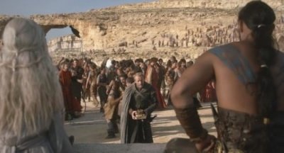 이렇게 이들이 왕국 남쪽에서 정치싸움을 하고 있을때, 동쪽 바다건너에서는 고대의 옛 왕족이었던 '타가리옌'이라는 용의 후손이라는 가문이 부흥 준비를 위해 이방민족을 끌여들여 전쟁을 준비하고있었고,