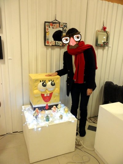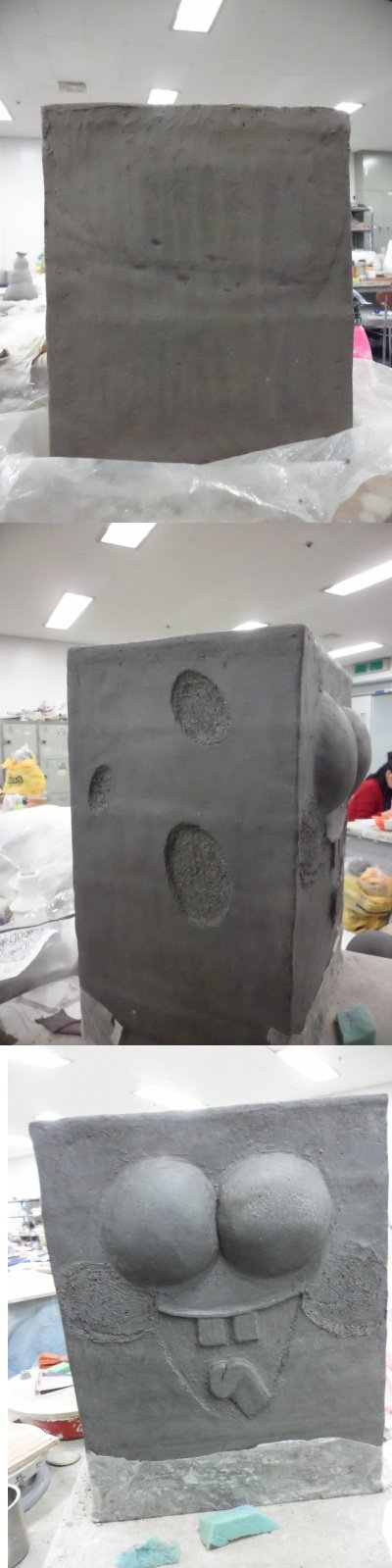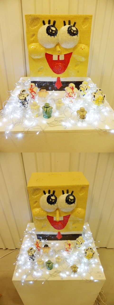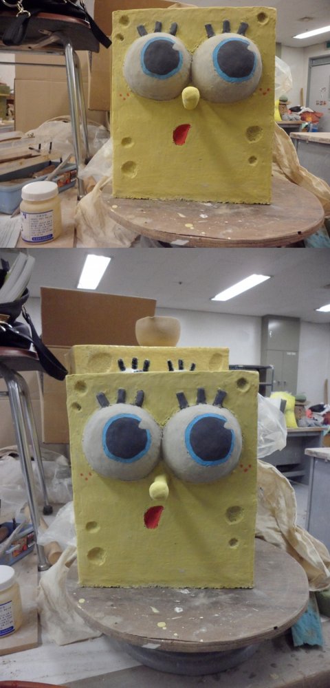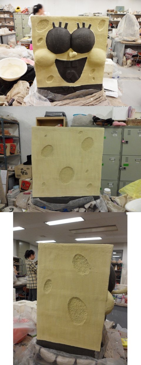 이렇게 학교에서 밤샘작업하며 만든 스폰지밥의 완성된 모습을 보여주겠음
