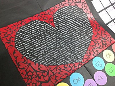 다펼쳤을때앞면! (가운데하트는 하나하나 오려서 붙인담에 편지쓴거