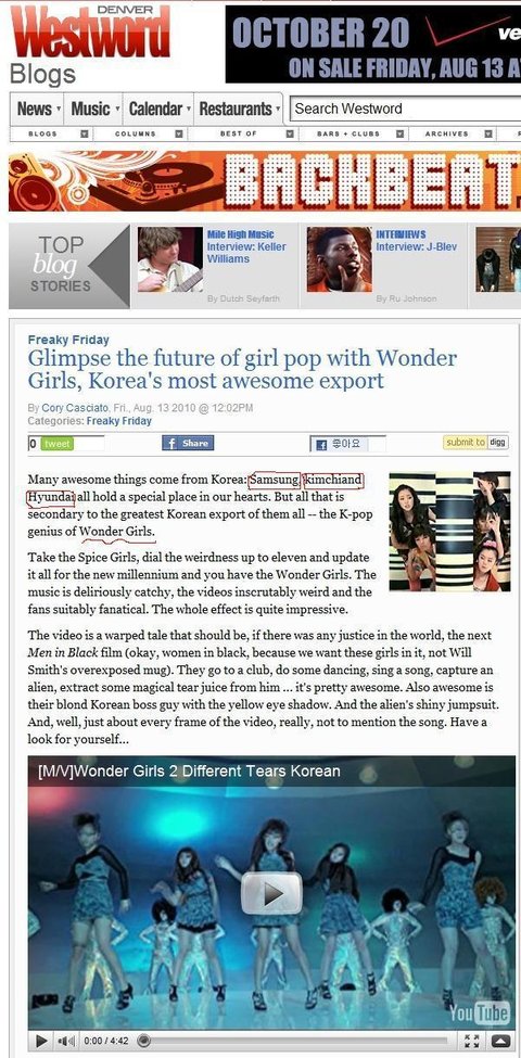 한국 하면 떠오르는 이미지 중에 원더걸스가 있네요^^