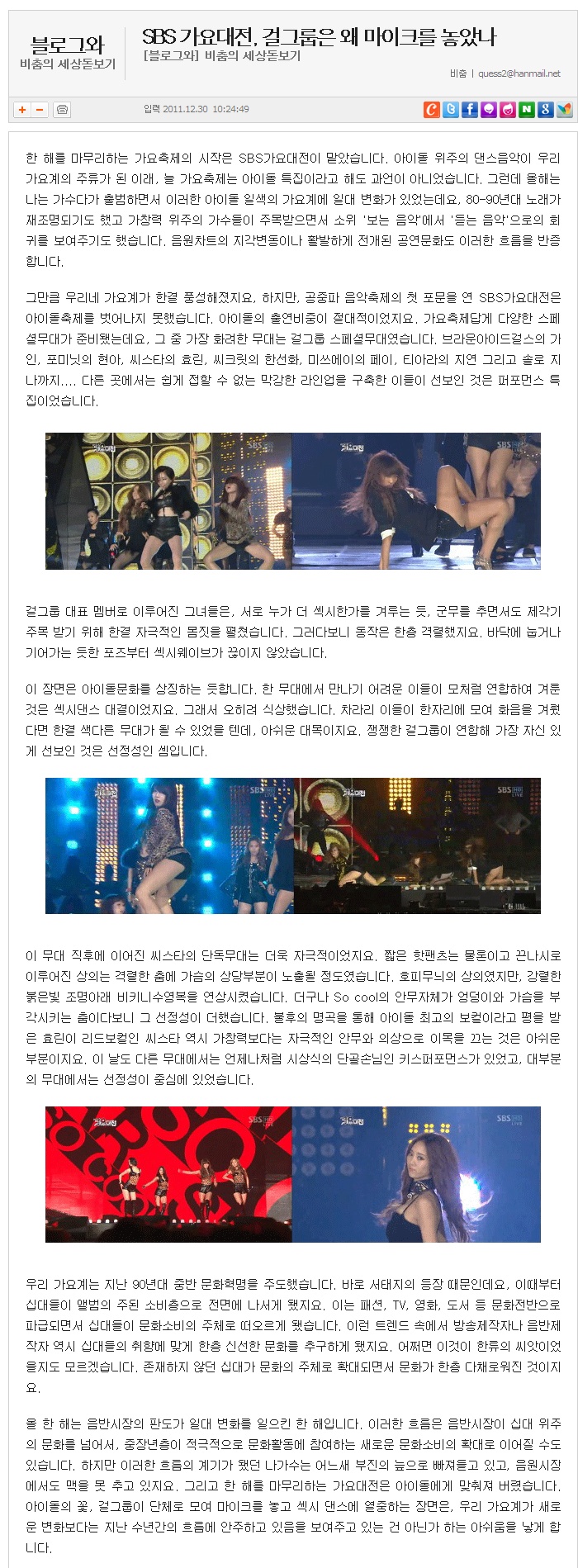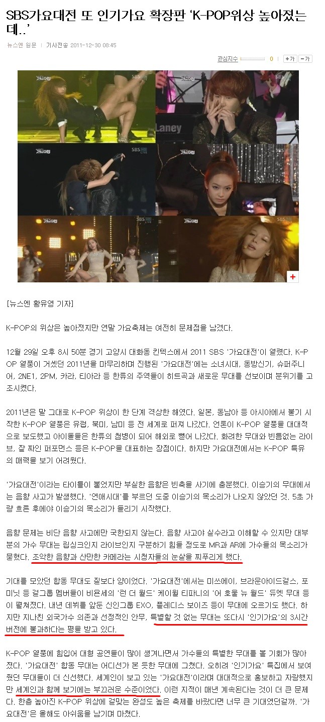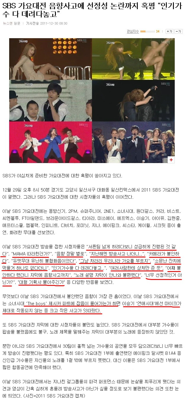< SBS 가요대전 관련 기사 ( 부정적인시각 ) >