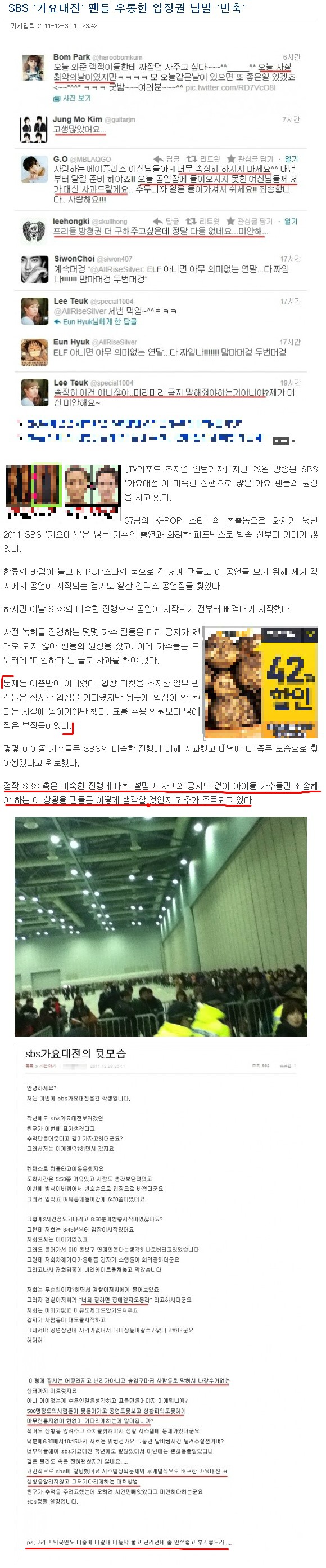5. 가요대전 좌석보다 많은 표를 찍어낸바람에 장시간기다리다가 느즈막에서야 입장이 불가능