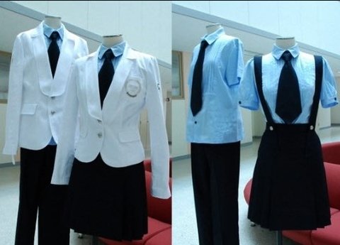故앙드레김 선생님이 직접 디자인한 교복. 동복, 하복이 각각 웨스턴, 오리엔탈로 총 4가지로 나뉘어져 있고 빈폴st 스웨터, 가디건에 ㅈㄴ 예쁜 코트, 게다가 체육복도 ㅈㄴ 이쁘다. 근데 다합해서 85만원 ㅋ