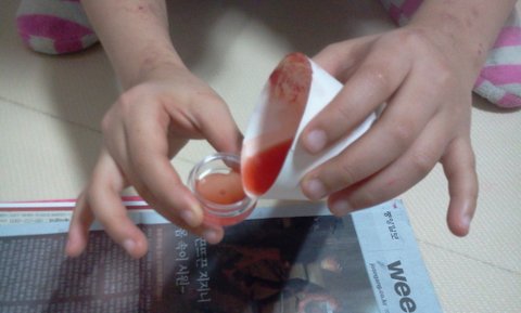 저 위에 덜은 바세린 위로 색소대용 립스틱이나 틴트를 떨어트려줌