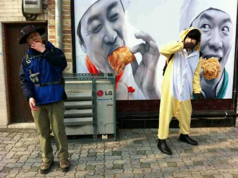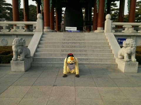 아! 그러다가 이상한 건물 앞에 이상한 동상을 있길래 따라하기로 했소
