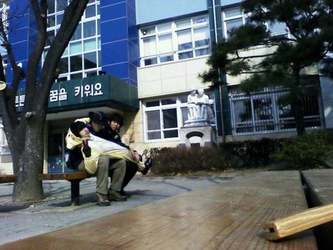 패닉해서 이상한 초등학교에 앉아있다 또 근본없는 동상을 보고 따라하기 시작했소