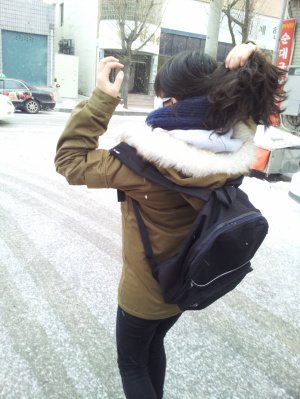 좀 굵은 눈송이들이 내리고있었음 ㅋㅋㅋ 잘안보이는구나..