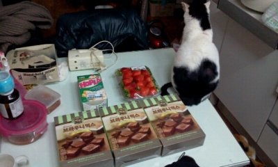고양이 먹지 말라고 전자렌지 안에 넣어둔 가_자_미 jpg.