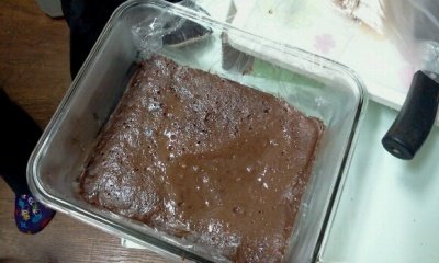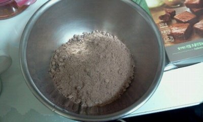 브라우니 믹스를 보울에다가 이쁘게 쏟아 부음