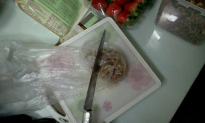 호두를 칼 등으로 후드리 찹찹(야매요리 사랑해요♡)