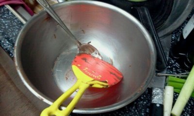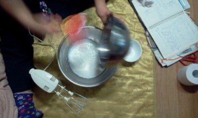 알뜰주걱으로 믹스를 솩솩 깔끔하게 긁어냄 (어머니의 도움ㅋ)