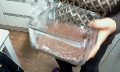 케이크 판에 랩을 씌움 (없으면 걍 큰 크릇에 랩 씨워영)