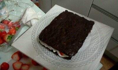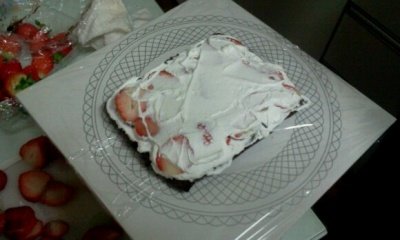 그 위에 딸기회를 올리고 꾹꾹 누른다음 다시또 생크림을 덕지덕지 바름