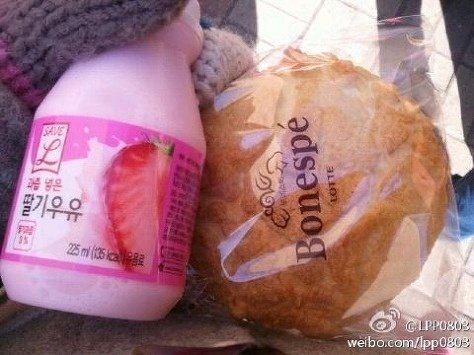 김밥 1줄과 쥬스 팬들에게 사줌.
