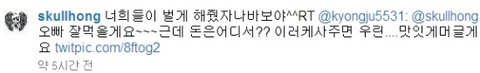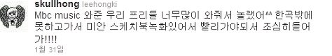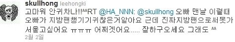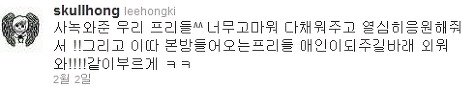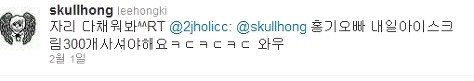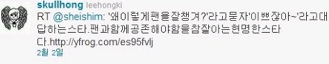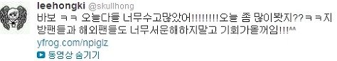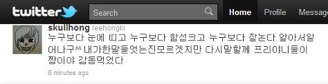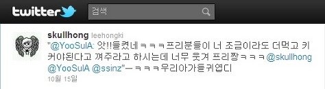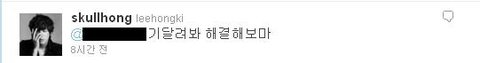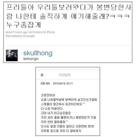 ↑ 사전녹화에 못들어갔던 프리가 트위터로 이홍기에게 맨션날림.