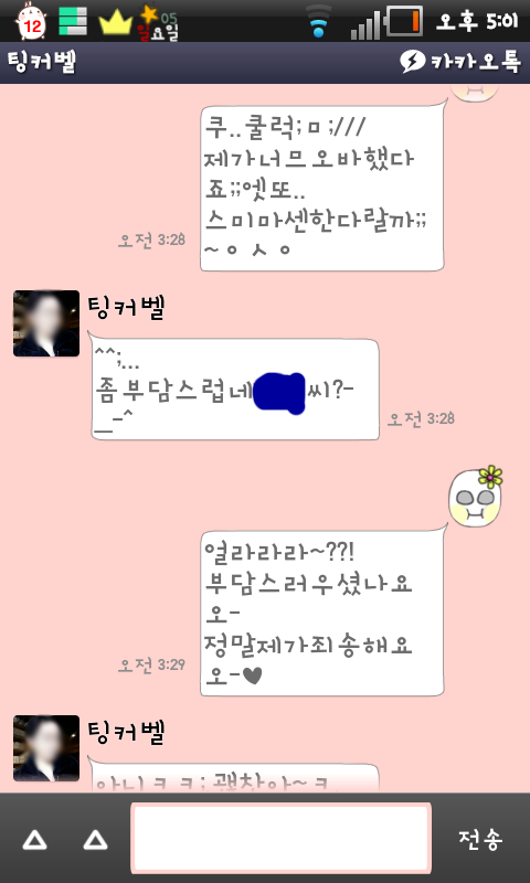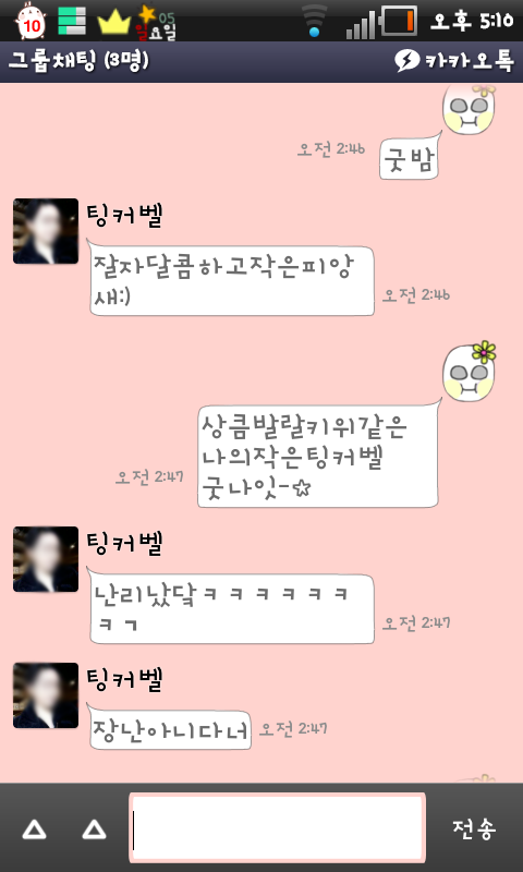 오늘도 계속 카톡을하다가 어제새벽에 카톡한 대화내용들을 다시한번보곤 엄청 웃으면서 판에 올리자는 얘기가 나옴 ㅋㅋㅋㅋㅋ