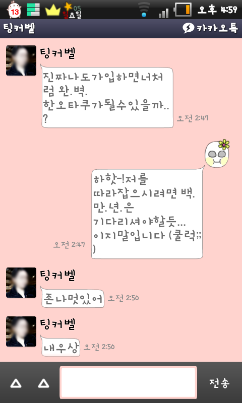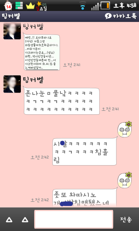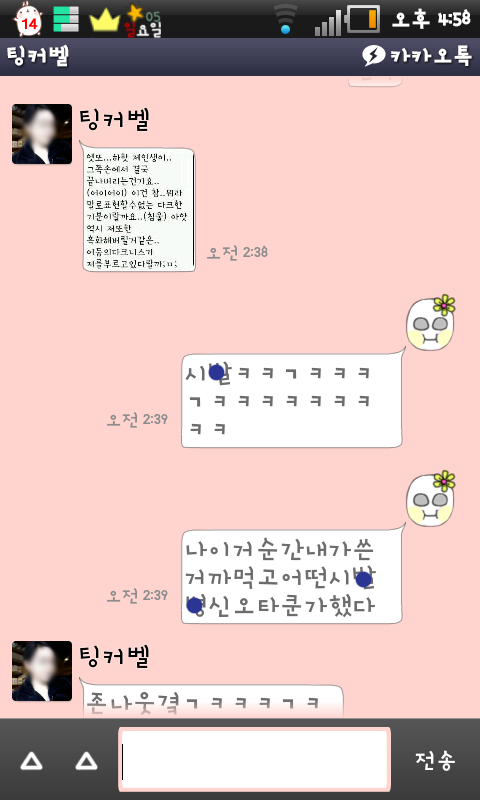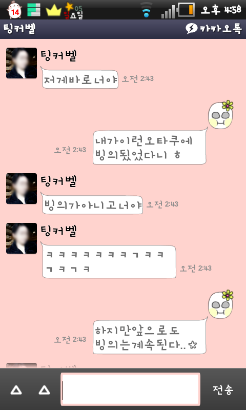이건 내가 예전에 오타쿠흉내내면서 썼던 말을 캡쳐해서 다시 나한테 보여준거 ㅋㅋㅋㅋㅋ