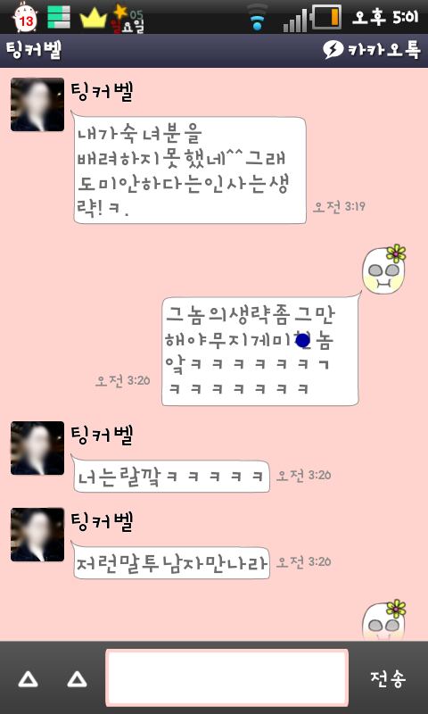 어제새벽에 한 병슨미넘치는 카톡들을 공개하겠음 ㅎㅎㅎ