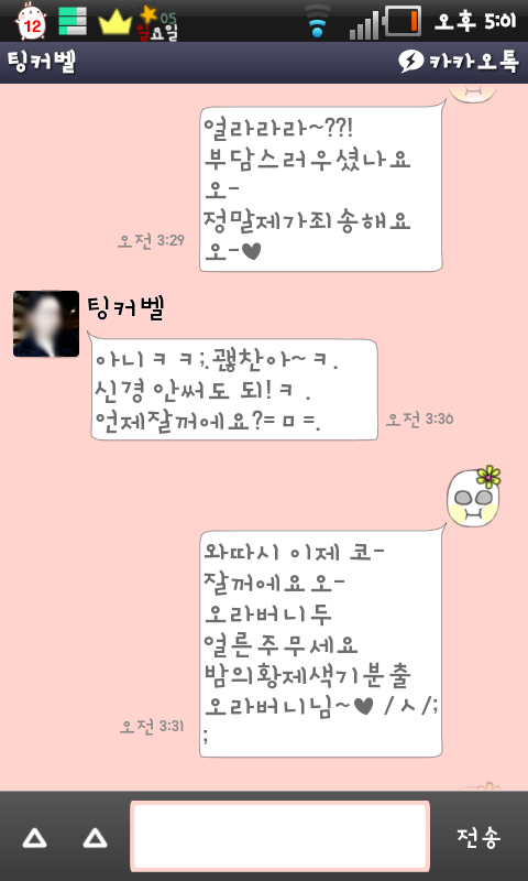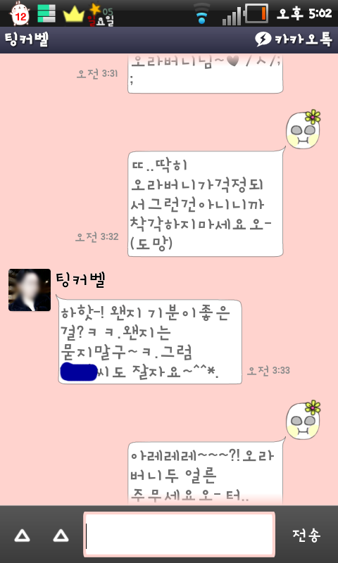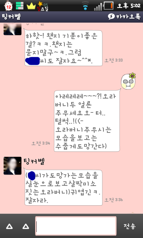 여기까지가 어제새벽 3시반까지 한 카톡임 ㅋㅋㅋㅋㅋㅋㅋㅋㅋㅋㅋㅋㅋㅋ