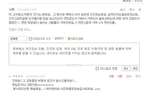 2월 4일 토요일날 여자 고딩이나 중딩이신분이 주워가셨다고 하네요..ㅋ?