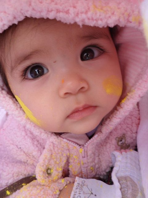 함께 컬러 페스티발 갔을때 보따리에 속에 꼭 싸여서 아빠 품에 안겨있을 때에요