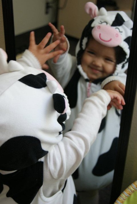젖소가 되었어요 ㅋㅋ 거울에 비친 자기 모습을 보면서 만족한 듯 ㅋㅋㅋ
