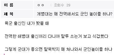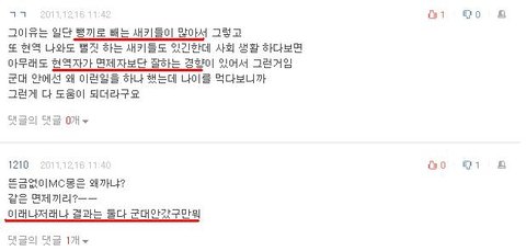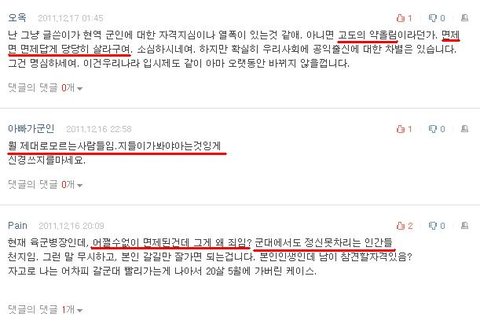괜히 쓸데없이 면제자 욕하는 군바리들이 어이가 없어서 말입니다.