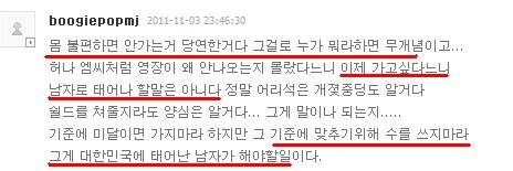 무슨 군대면제자가 남자냐고 이러는 등등.