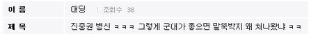 "쓸데없이 군대면제자 욕하는 새끼는,