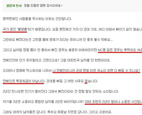 "물론 님같은 군면제자의 노력심정도 이해할만은 하죠,