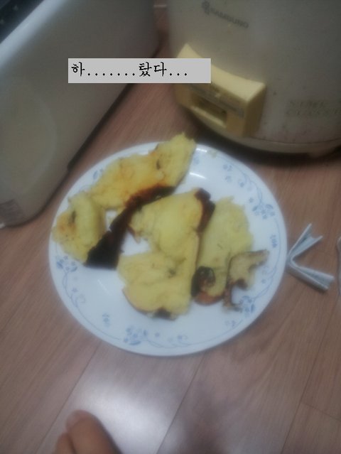 이때우리의어마마마께전화를드렸음..하지만어마마마가고장났나보다고후라이팬에하라는겅미..여러분아시죠?케익은후라이펜에하라는게아니라는거 그래서고장병명은취사버튼누르면버튼이올라오는거였는데내가종이접어서끼어놓음ㅋㅋㅋㅋㅋ사실 크림치즈가없을때부터 만들지마라는게시였음..밥통까지말썽이니난이왕해본거열심히하자생각햇음뭔가느낌이안좋음..