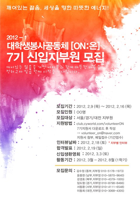 -> 지원서 파일의 제목은 (ON-7기-희망지부) 성명-학교명 으로 반드시 통일해주세요