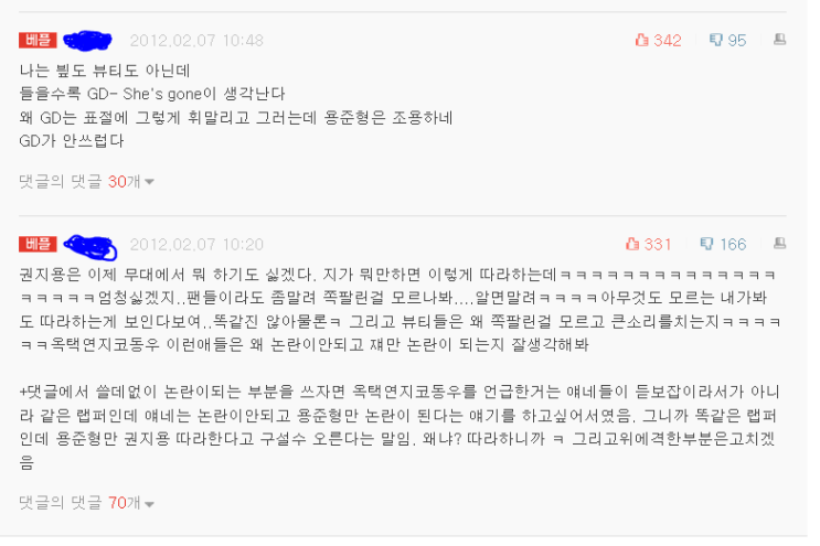 용준형을 GD로 오해해서 지용오빠 용준형 때문에 욕 먹어야 했어요