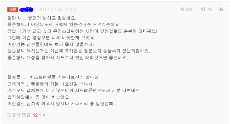 왜? 어째서 저희가 용준형군때문에 욕을 먹어야 하죠?