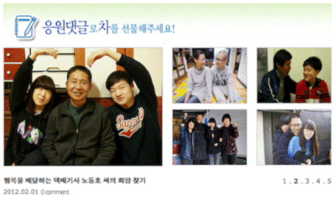 다섯 가족의 사연에 각각 300개 이상의 응원댓글이 달리면