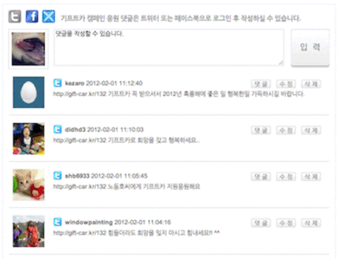 이번 기프트카 응원댓글은 참 편리하게도