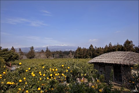 16. 감귤농장뿐 아니라... 제주 기와집까지... 참고로, 이 순간이 이번 여행에서 가장 좋은 날씨의 순간과 제주도의 모습입니다.