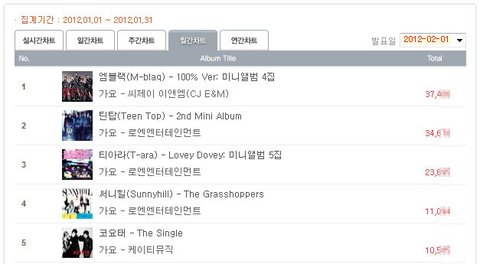 ★ 1월 한터차트와 비교해보시죠
