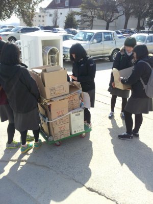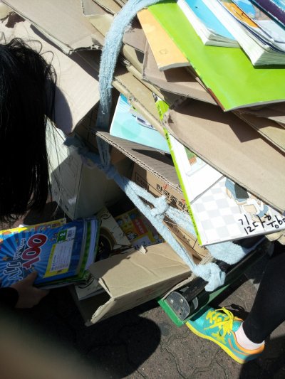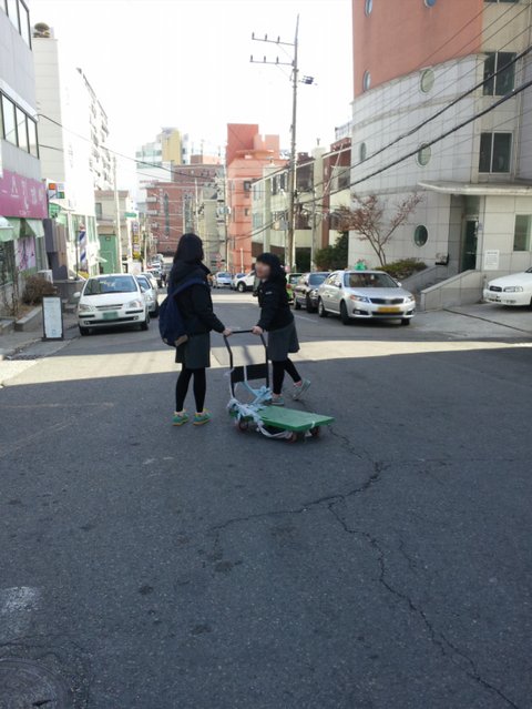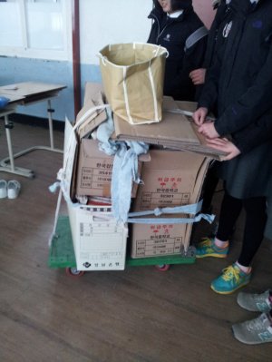 우린 처음에 박스에 넣어서 들고갈라고 했는데 생각보다 너무많아서 학교 매점에서 수레를 빌림ㅋㅋ