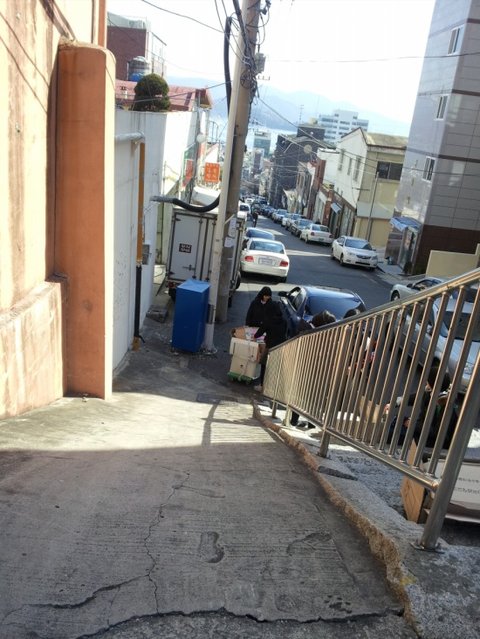 교문에도착해서 다시 밑으로 내려옴 ㅋㅋ 내려올때 이런 경사로+계단이 두개가 있는데 처음경사로+계단은 계단으로 끌고오다가 골로갈뻔했음ㅋㅋ 그래서두번째에는 경사로를 택했는데 두번 갈뻔핰ㅋㅋ