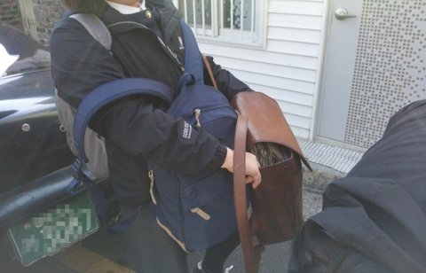근데 갑짜기 들고가던 박스 2개가 터져서 이렇게 가방에 쳐넣쳐넣했음ㅋㅋ