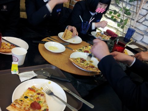 우리모두 배가고파 그 큰 피자한조각을 2분도안되서 없애고 한조각이 남아서 6등분을함ㅋㅋ( 사진에선 한조각음슴) 말아서 먹을라고했는데 쓰레기같았음ㅋㅋㅋ그래도 굉장히 맛있었음ㅋㅋ